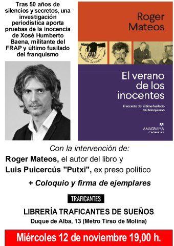 El 27 de septiembre de 1975, al alba, el régimen franquista cerró su historial de ejecuciones con el fusilamiento de cinco condenados por terrorismo. El último en morir acribillado fue Xosé Humberto Baena, un joven militante gallego del Frente Revolucionario Antifascista y Patriota (FRAP), acusado —sin pruebas ni testigos— de matar a un policía en la calle Alenza de Madrid. Allí había huido Baena apenas meses antes, con la policía pisándole los talones por sus actividades clandestinas, justo cuando el FRAP estaba a punto de emprender una escalada de violencia que pretendía derrocar una dictadura ya agonizante.