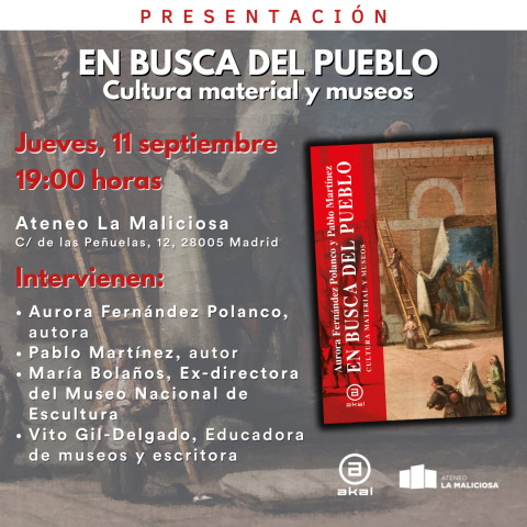 Presentación del libro En busca del pueblo (Akal, 2025). Con Aurora Fernández Polanco (Catedrática emérita de Teoría e Historia del Arte, UCM); María Bolaños, ex-directora del museo nacinal de escultura; Vito Gil-Delgado; educadora de museos escritora; y Pablo Martínez (Autor y Profesor de Hª del Arte, UCM)
