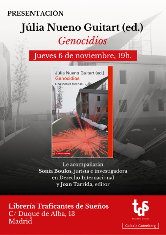 Presentación del libro Genocidios (Galaxia Gutenberg, 2025). Con Júlia Nueno Guitart, coordinadora; Sonia Boulos, jurista e investigadora en derecho internacional; y Joan Tarrida, autor.
