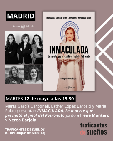 Marta García Carbonell, Esther López Barceló y María Palau Galdón se propusieron dignificar la memoria de Inmaculada Valderrama, que así se llamaba la protagonista de aquella tragedia. Sirviéndose de archivos y de testimonios, las autoras sacan a la luz muchos detalles desconocidos del caso y se adentran en el siniestro funcionamiento del Patronato de Protección a la Mujer, una institución franquista dirigida al control de las mujeres y que siguió operando hasta 1985, bien entrada la democracia.
