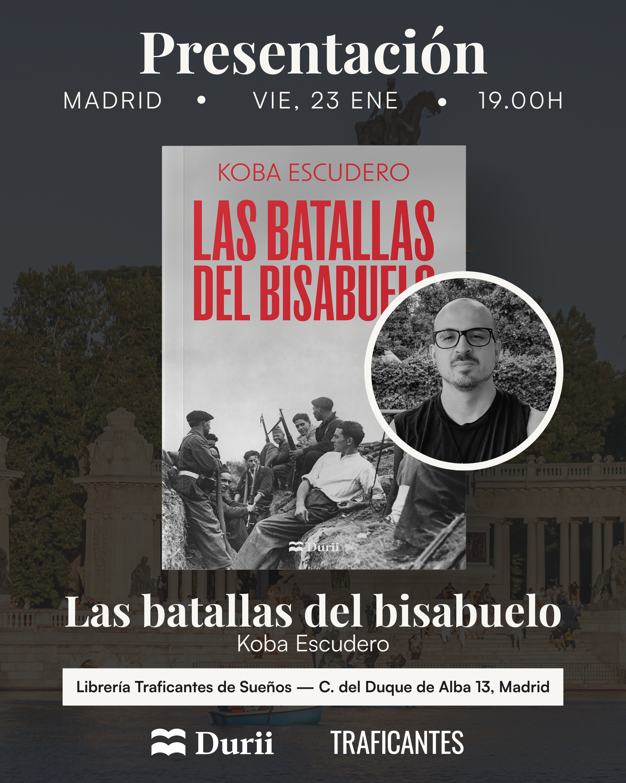 Presentación del libro Las Batallas del bisabuelo (Durii, 2025). Con Koba Escudero, autor; y Javier Martínez, editor.