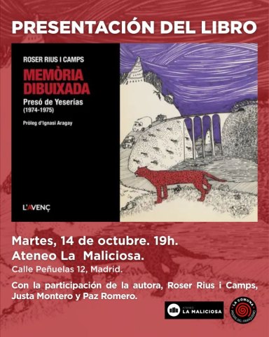 Presentación del libro Memoria Dibuixada. Presó de Yeserías (1974-1975) (L'Avenç , 2025). Con Roser Rius i Camps, escritora e ilustradora, ex-presa en Yeserías (Madrid) por su militancia antifranquista en la Liga Comunista Revolucionaria. Acompañan Justa Montero, activista feminista y también militante de la LCR; y Paz Romero, activista de La Comuna.